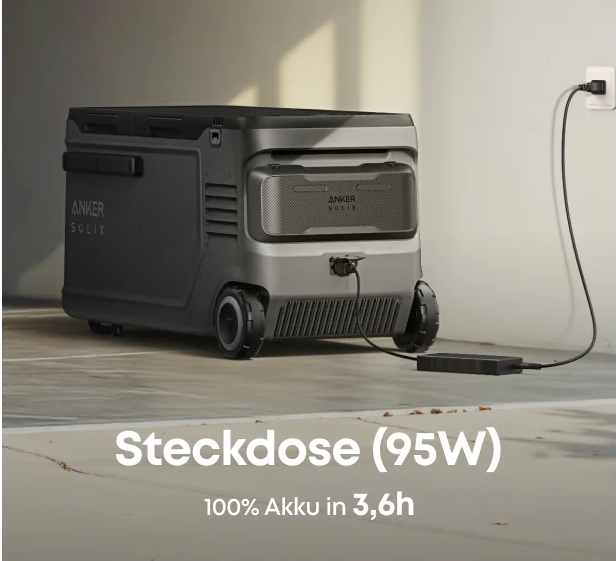 – Energiequelle: Akku (288 Wh), 100 W Solarladeeingang, Netzstrom, Autoanschluss