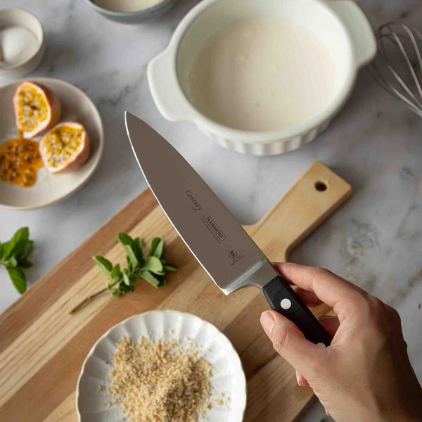Das Tramontina CENTURY Kochmesser ist ein echtes Multitalent für ambitionierte Köchinnen, Köche und BBQ-Fans. Ob Fleisch, Gemüse oder Kräuter – die breite, leicht gebogene Klinge meistert Schneid-, Zerteil- und Hackarbeiten mit beeindruckender Präzision. Ideal auch als Wiegemesser zum feinen Zerkleinern von Knoblauch, Zwiebeln oder frischen Kräutern – sowohl in der Küche als auch beim brasilianischen Churrasco.