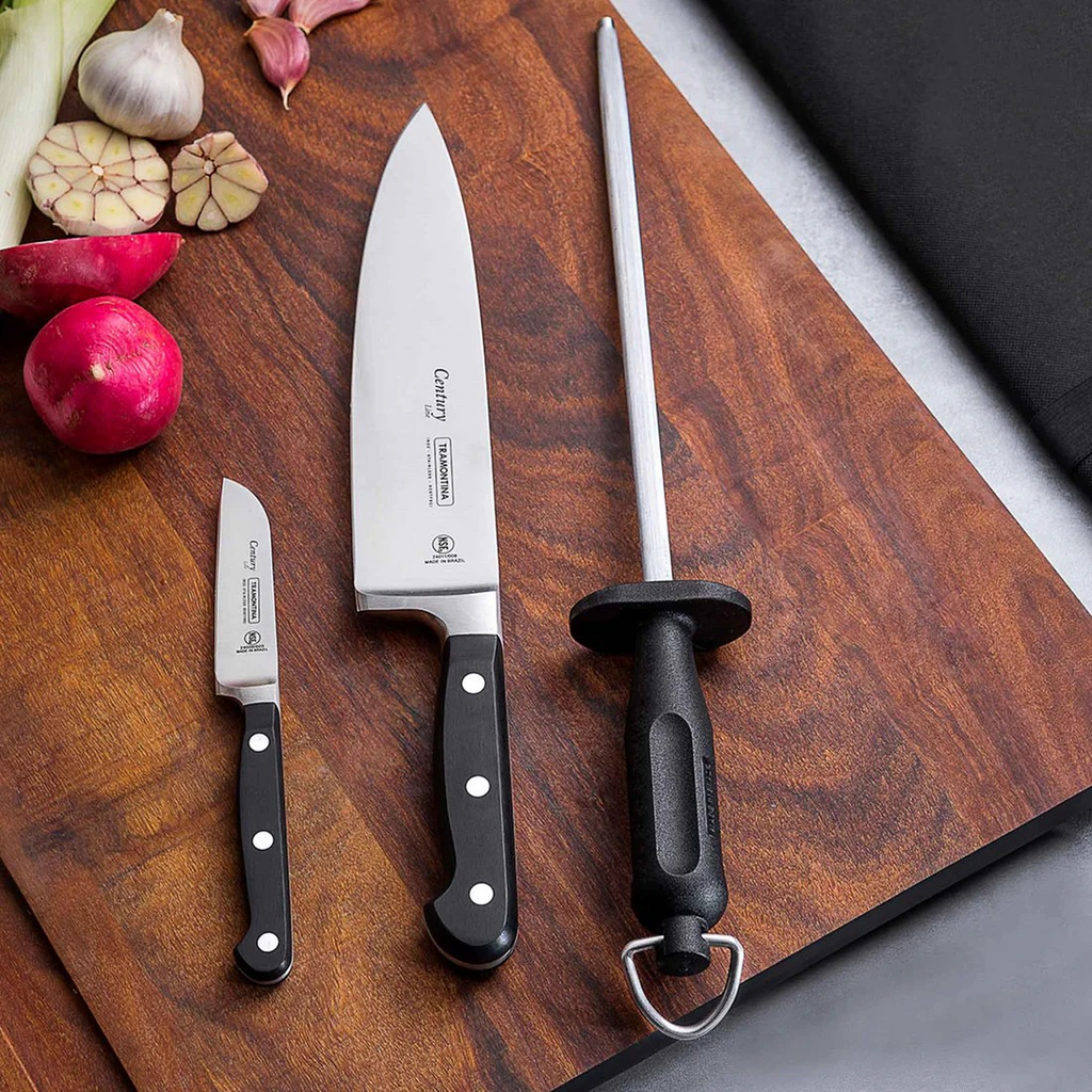Ein echtes Allzweckmesser für Hobby- und Profiköche. Ob schnelles Zerkleinern am Schneidebrett oder exaktes Hacken bei der BBQ-Vorbereitung – das CENTURY Kochmesser bietet zuverlässige Leistung in jeder Situation. Optimal kombinierbar mit einem Messerschärfer oder einem hochwertigen Schneidebrett aus Holz.
