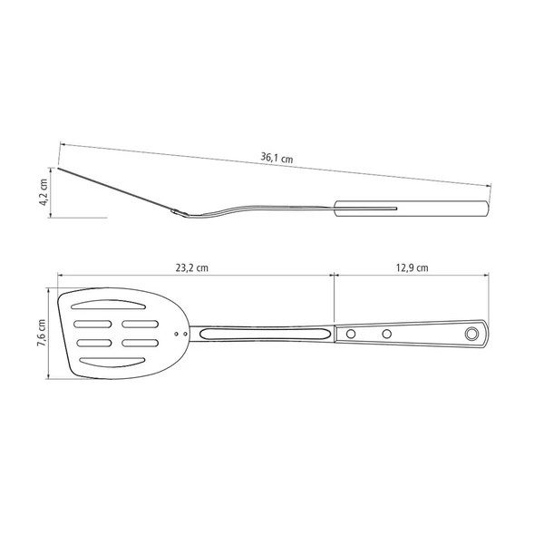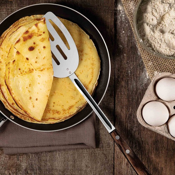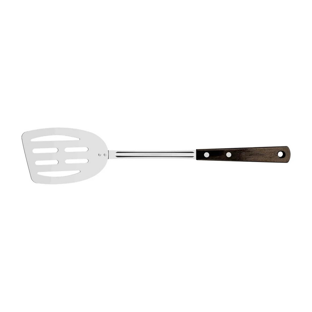 Der LANDHAUS Pfannenwender von Tramontina vereint Funktionalität mit klassischem Design. Mit der geschlitzten Wenderfläche aus rostfreiem Edelstahl gelingt das Wenden und Portionieren von Fleisch, Fisch oder Gemüse besonders leicht – ob in der Pfanne oder auf dem Grill.