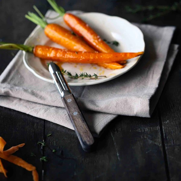 Ob Karotten, Kartoffeln oder Äpfel – mit dem LANDHAUS Schäler von Tramontina geht das Schälen leicht von der Hand. Die scharfe Edelstahlklinge sorgt für saubere, mühelose Schnitte, während der ergonomische Holzgriff eine angenehme Haptik bietet und selbst bei längeren Vorbereitungen gut in der Hand liegt.