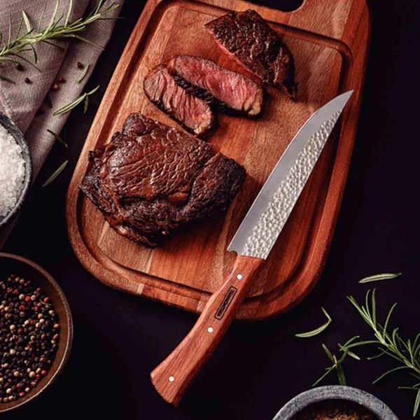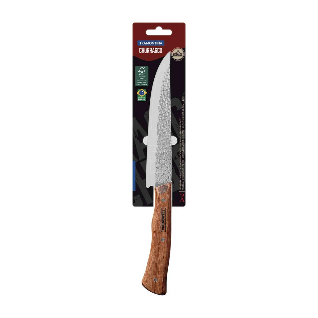 Entdecke die kraftvolle Eleganz des NÔMADE Fleischmessers – inspiriert von den handgefertigten Messern der südamerikanischen Gauchos. Die eindrucksvolle Hammerschlag-Klinge aus rostfreiem Edelstahl gleitet mühelos durch jedes Fleischstück und sorgt für präzise, saubere Schnitte – perfekt für Grillmeister, Köche und Fleischliebhaber.